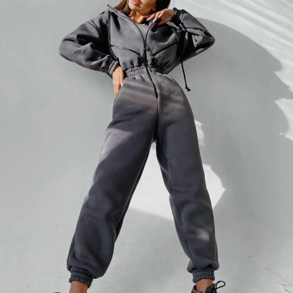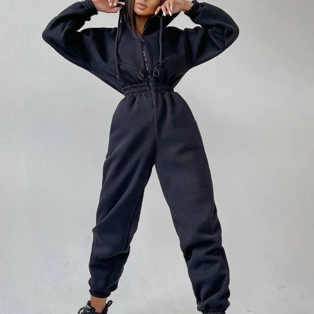 Korea Fashion Hoodies Jumpsuit One Piece Casual Rompers À Manches Longues Hiver Taille Haute Salopette Femmes Tenue Femmes Tracksuit pull