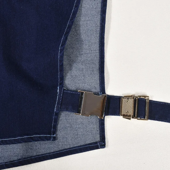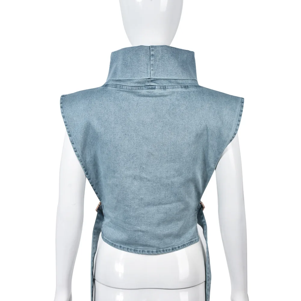 Women Vest Summer Fashion Stand Collar Sleeveless Bandage Denim Crop Tops Streetwear Women Sexy Hollow Out Jeans Cargo Vest